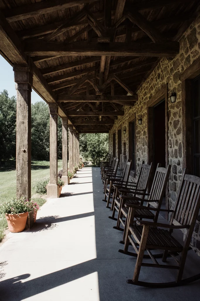A double-wide front porch feels timeless when lined with rocking chairs. It creates a social environment where neighbors naturally gather. I’ve seen entire streets where families sit out during summer evenings, turning porches into friendly community hubs.