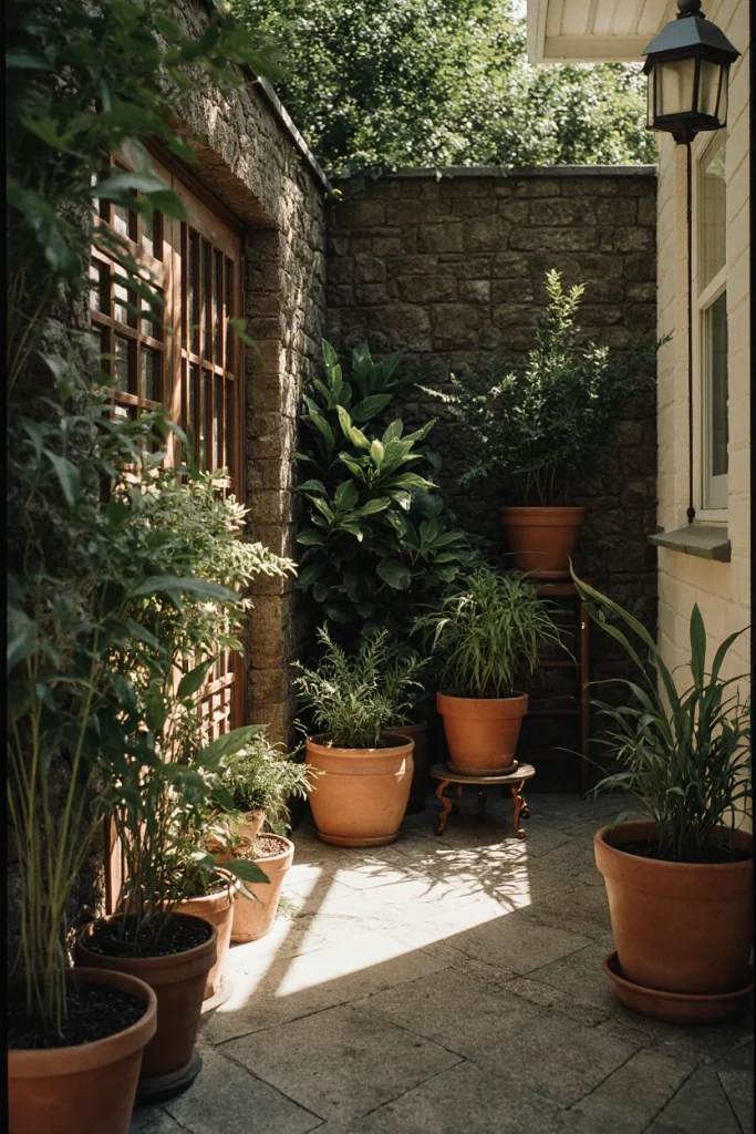 20. Simple Back Porch With Potted Greenery