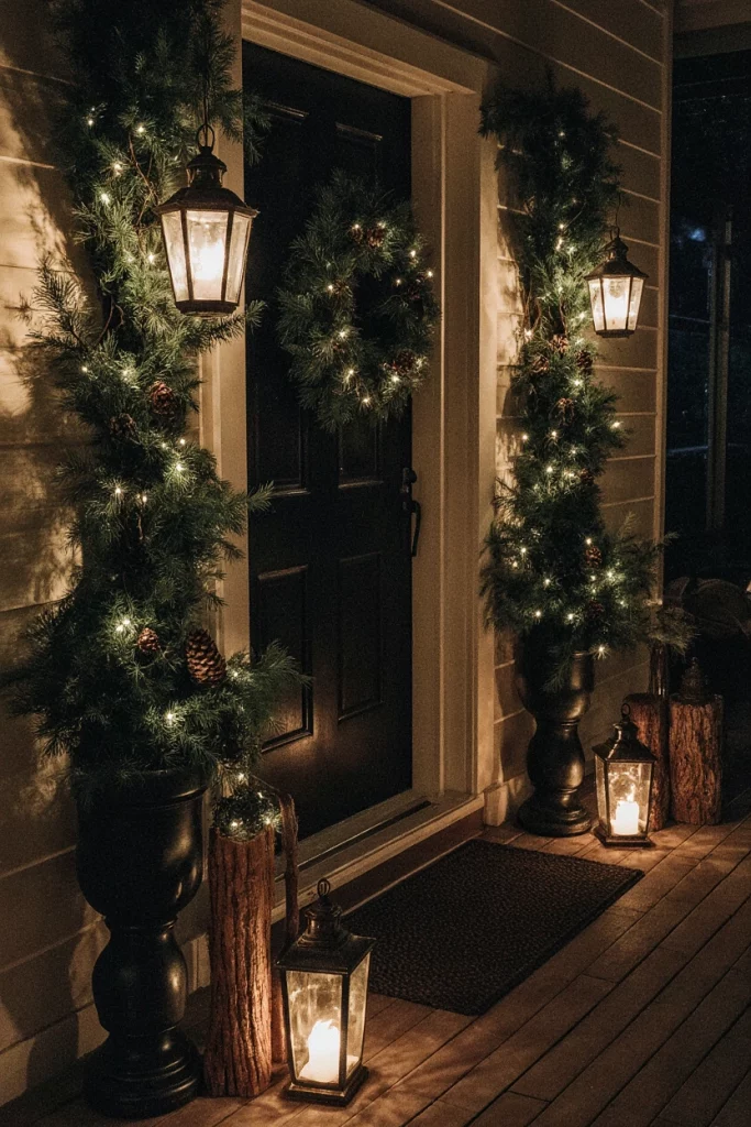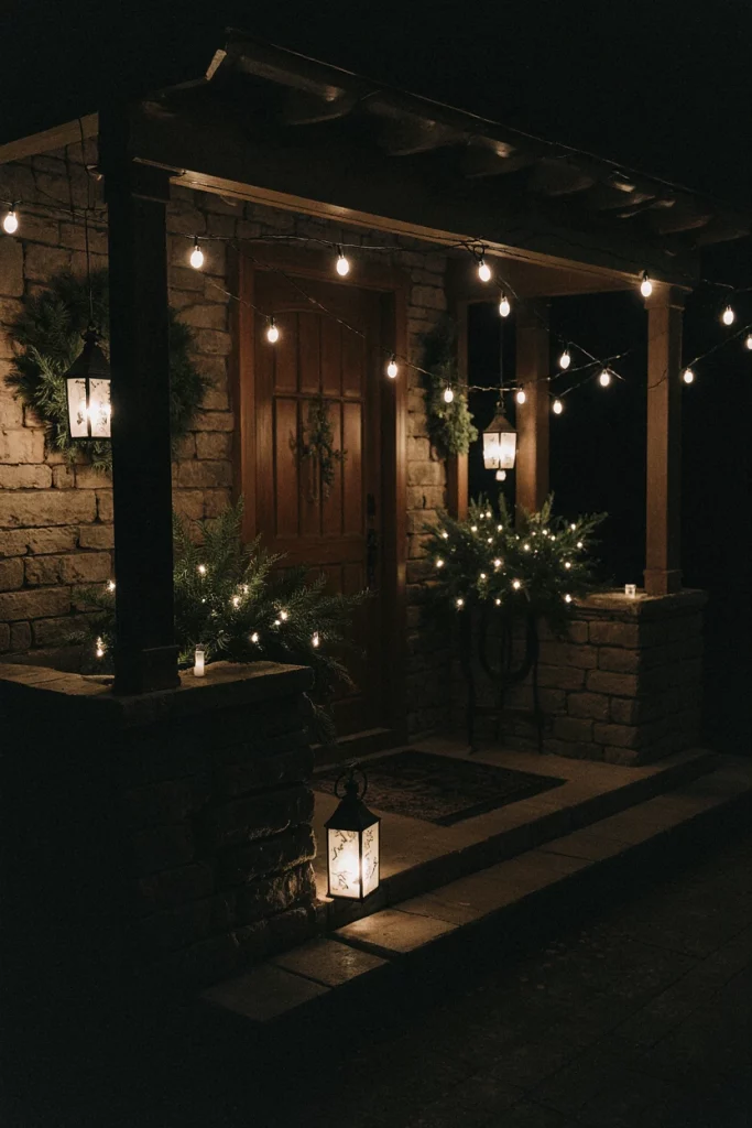 A festive Christmas front porch transforms even a small front space into something magical. Soft white lights, evergreen elements, and warm lanterns create nostalgic charm. Growing up, our family decorated simply, but people still remember how welcoming the front porch felt each season. This style suits everything from compact homes to double-wide front layouts.