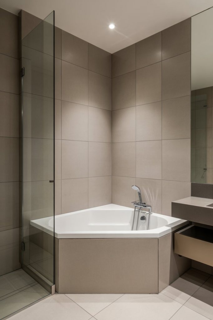 These compact tubs are wonderfully space-efficient while allowing for complete soak relaxation. Add simple neutral tiles and a small shower walk for versatility. Perfect for winding down in style, whether you are a couple or a singleton.
