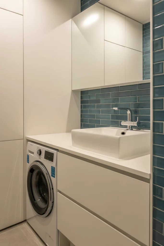 3. Wall-Mounted Vanity with Integrated Wash Machine