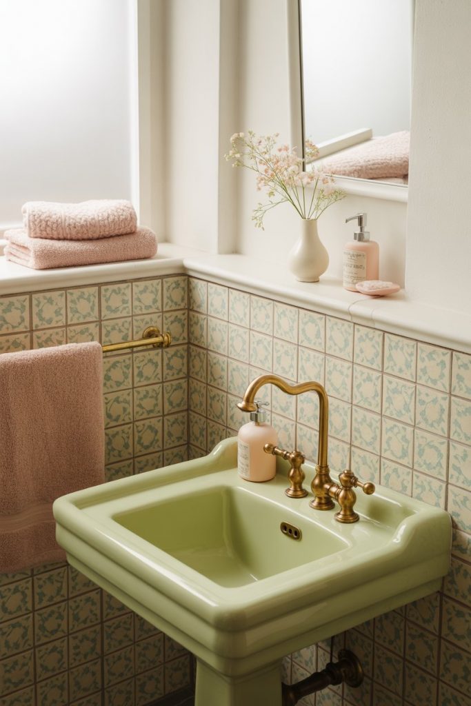 7. Vintage Flair with Patterned Tiles and Fixtures