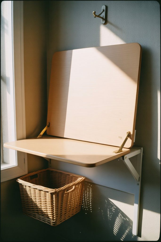A fold-down desk hinged to the wall creates a super compact spot for sorting mail or setting down grocery bags. When closed, it reads as a slim panel or shelf; when open, it provides a temporary surface without eating up permanent floor space. This solution shines in extra tight entryways where even a skinny console feels like too much.