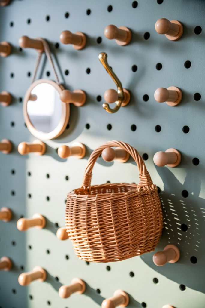 Hardware stores sell pegboard accessories in packs of ten, so you can gradually add shelves or hooks without a big upfront investment. If you’re handy, frame the pegboard with one-by-two trim to give it a more finished look. The affordability makes this ideal for first-time homeowners or anyone furnishing a rental, since you can take the board with you when you move.