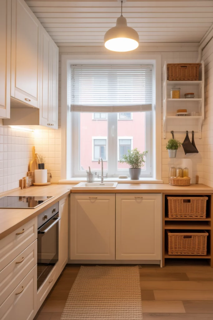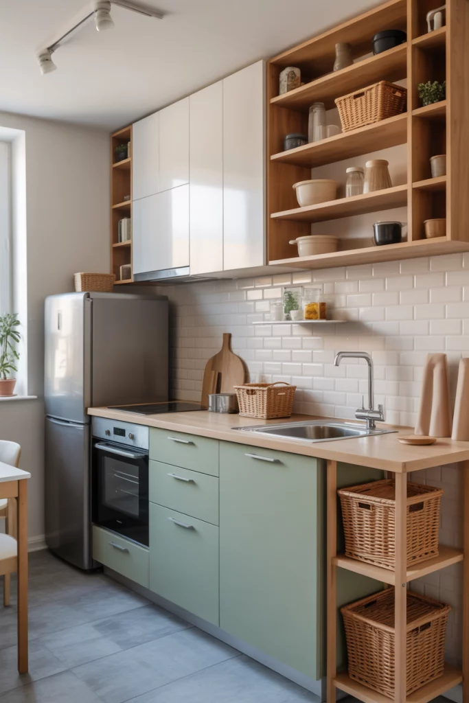 Finally, storage remains the king of small kitchen design. Super clever solutions like wall-mounted racks, under-shelf baskets, and magnetic panels make even 2mx2m kitchens highly functional. I once helped a friend install vertical spice racks in their studio apartment, and it freed up an entire cabinet. Add Ikea pull-outs, and suddenly the kitchen feels modern simple but practical. Websites like The Kitchn consistently highlight that organization is as important as style.