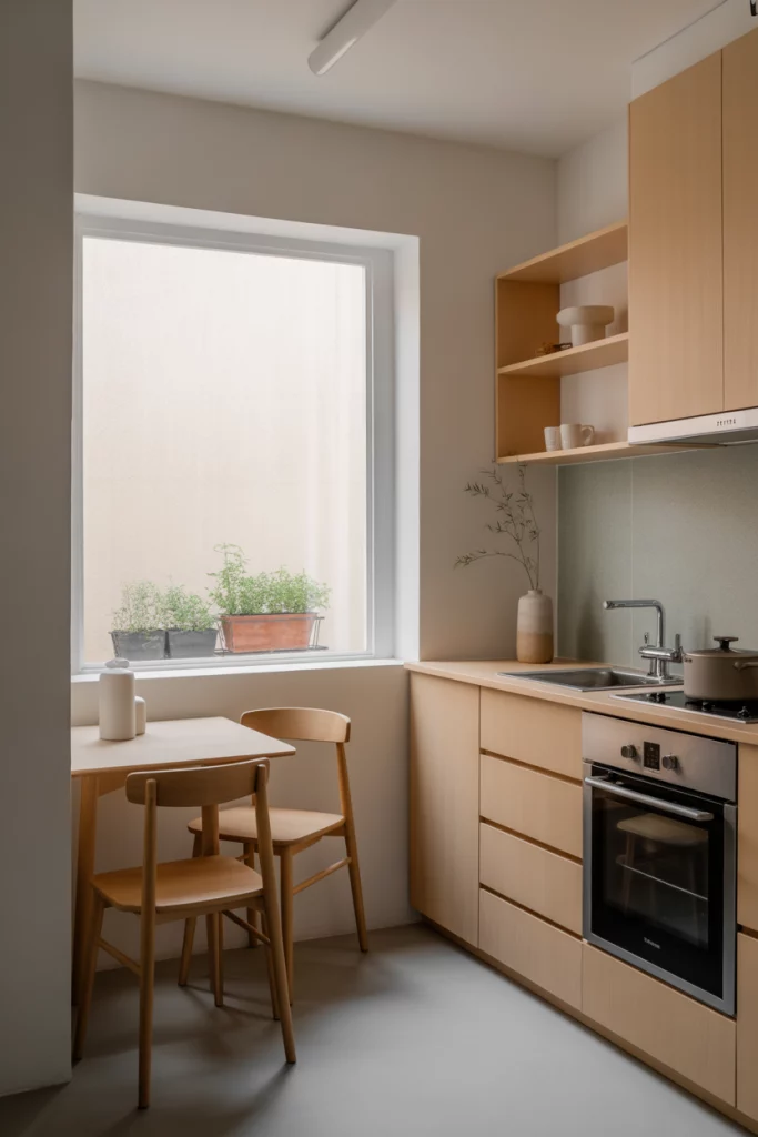 The Japandi style, a mix of Scandinavian and Japanese design, is becoming very popular in 2026. It focuses on balance, simple natural materials, and soft color palettes. Even a 2mx2m kitchen can feel peaceful when furnished with clean wood cabinets, open shelving, and smart storage. I once saw this style in a Tokyo apartment, and the calm atmosphere made the small space feel much larger. Designers on Dezeen frequently highlight Japandi as a leading aesthetic in compact homes.