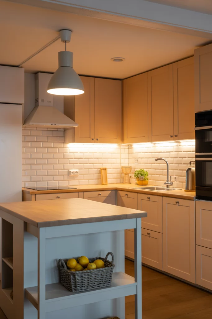 A kitchen island is usually seen as a luxury, but in 2026, slim and movable versions are becoming very popular. They fit even in narrow apartment kitchens and offer extra counter space without crowding. I’ve seen compact Ikea-style rolling islands that serve as both prep tables and dining spots. Add modern simple finishes, and you get both practicality and elegance. The Houzz community often highlights movable islands as small-space lifesavers.