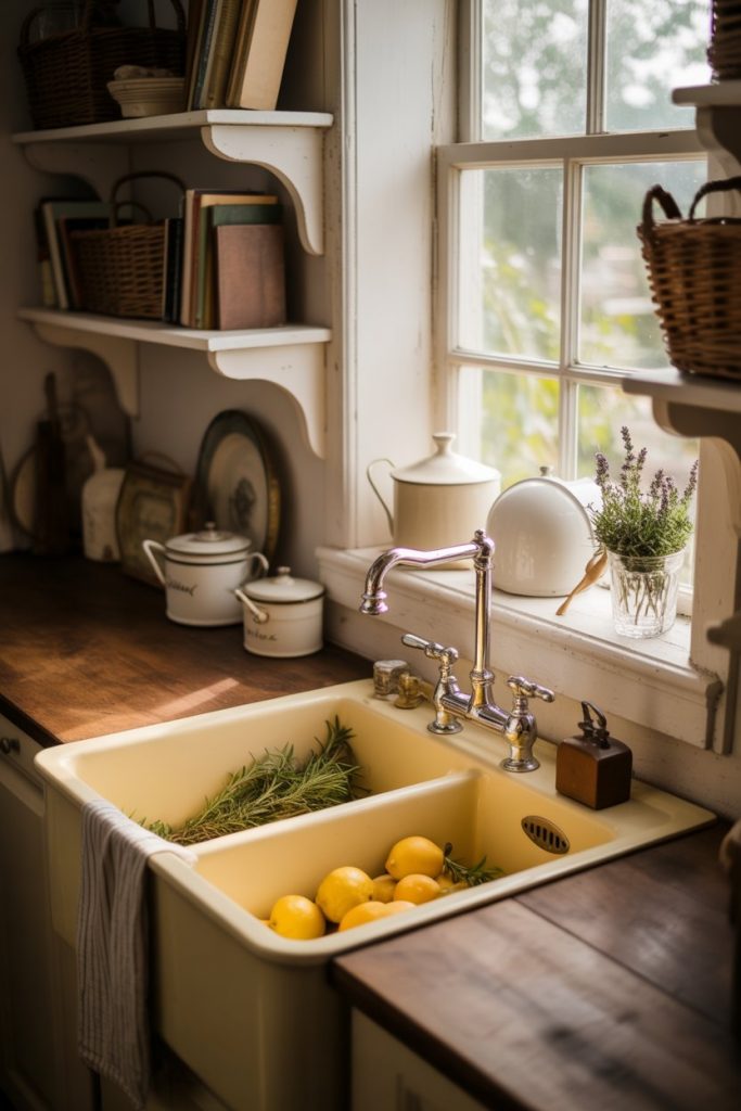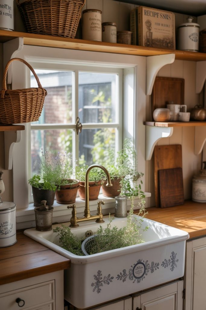 A rustic farmhouse look blends natural textures with warmth, making even the smallest kitchen feel cozy. Reclaimed wood shelves, vintage fixtures, and simple decorating touches add character without overwhelming the space. I once visited a friend’s country home where a modest kitchen felt inviting because of these elements. Adding extra baskets and wall-mounted storage also helps maintain order while highlighting charm. Experts at Country Living frequently recommend farmhouse kitchens for their timeless appeal.