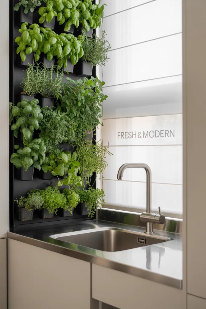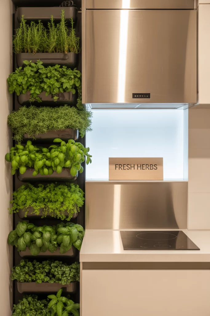 For urban cooks, a vertical garden brings greenery into the smallest kitchens. Wall planters, hanging herbs, and hydroponic shelves turn even a 2mx2m apartment kitchen into a fresh oasis. This idea is very useful for those with no outdoor space. I once grew basil in a hanging rack, and it changed how I cooked. The Spruce often suggests indoor gardens as both aesthetic and practical storage of fresh herbs.