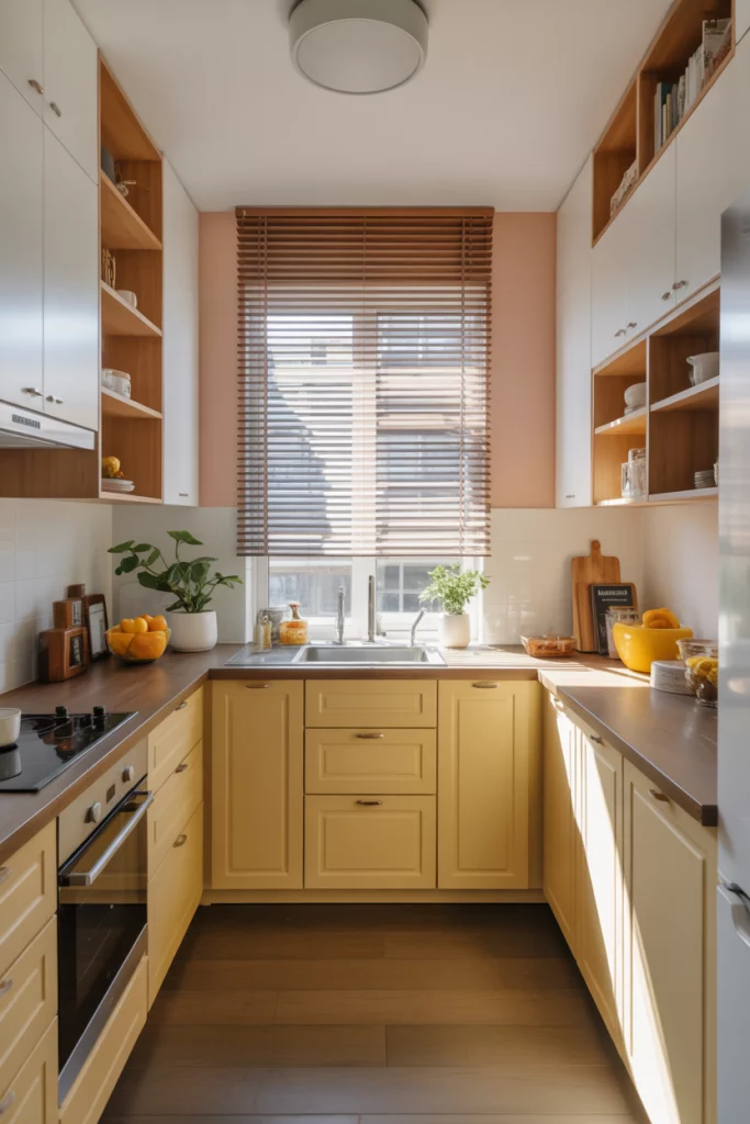The U-shaped kitchen is one of the best 2026 trends for compact living. This layout makes cooking very convenient by putting everything within reach. With the right color palette, it can appear modern luxury rather than crowded. Adding open shelving and under-cabinet storage gives it a fresh, uncluttered look. As interior blogs like Apartment Therapy suggest, this design is perfect for tiny kitchens that need maximum flow and order.
