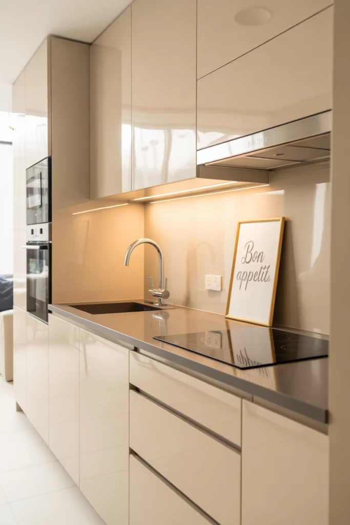 For those who want glamour in small spaces, a modern luxury look can transform the kitchen into a statement. Using glossy cabinets, metallic accents, and smart layout lighting makes the kitchen shine. I once toured a model apartment where a compact galley kitchen looked twice its size with mirrored finishes. This aesthetic is very popular with young professionals. Elle Décor often features small luxury kitchens as proof that elegance is not limited by square footage.