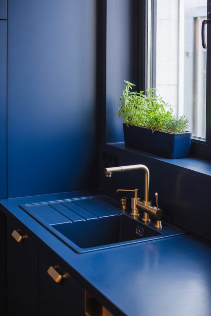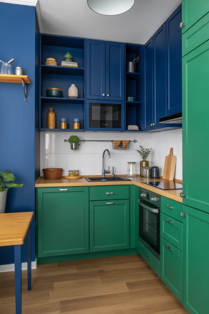 A bold color scheme is a very effective way to bring life to small kitchens. From pastel blues to forest greens, choosing one aesthetic tone creates harmony and depth. Even a tight layout benefits from a unified scheme. My aunt once painted her apartment kitchen cabinets a deep navy, and suddenly the room felt modern simple yet dramatic. Designers at Domino stress that color is one of the least expensive yet most impactful decorating tools.