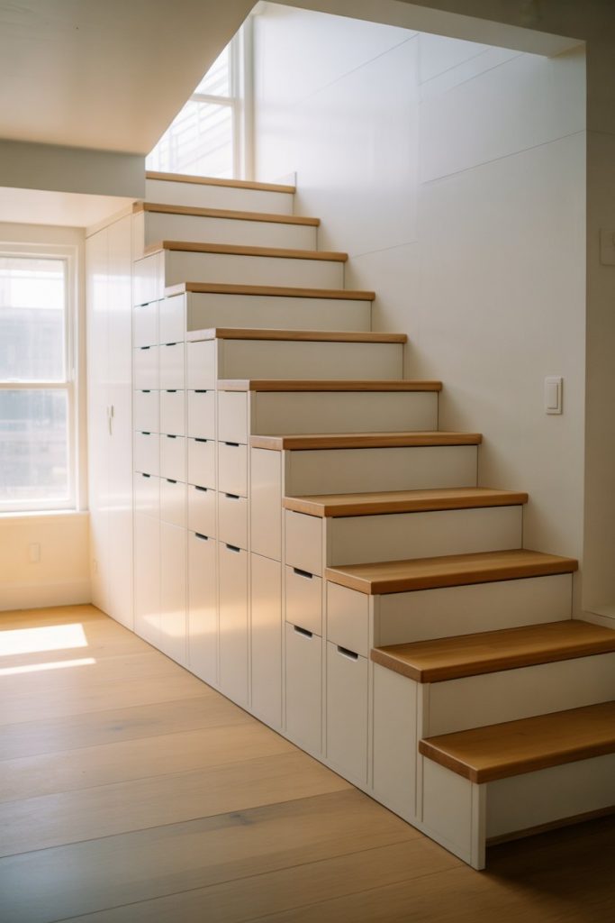 This idea is especially popular in tiny homes, city apartments, and bungalows where closet space is scarce. A micro anecdote: one homeowner I know stored seasonal shoes, craft supplies, and holiday decor in drawers under her stairs, freeing up an entire closet elsewhere. The key is working with a carpenter who understands both structural integrity and cabinetry—poorly built storage can weaken the staircase. Budget around $3,000–$7,000 depending on complexity, but the added function is worth it.