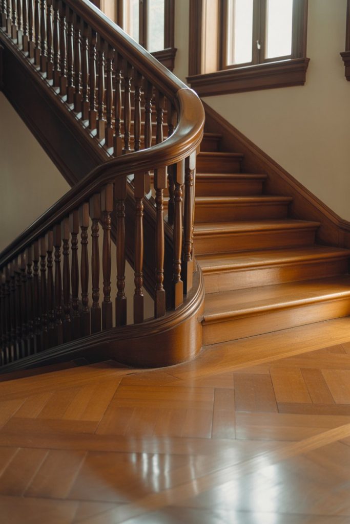For a timeless, elegant look that honors traditional American architecture, you can’t go wrong with classic turned balusters and a rich, stained wood handrail. These detailed spindles—often featuring decorative curves and profiles—bring a sense of craftsmanship and history to your home. Pair with warm wood tones like cherry, walnut, or mahogany for a sophisticated, old-world feel.