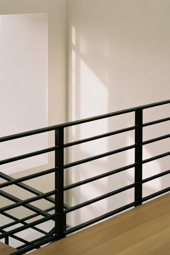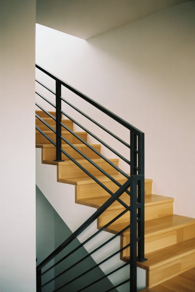 This look is a favorite among architects and designers for its ability to blend into various styles—it works in industrial lofts, Scandinavian-inspired homes, and even softened farmhouse interiors. One common mistake is choosing glossy black instead of matte—the sheen shows fingerprints and dust, while matte stays cleaner-looking longer. Expert-style commentary: black railings are a smart choice if you want to add contrast without introducing color. Pair with light walls and floors to keep the space feeling open and balanced.
