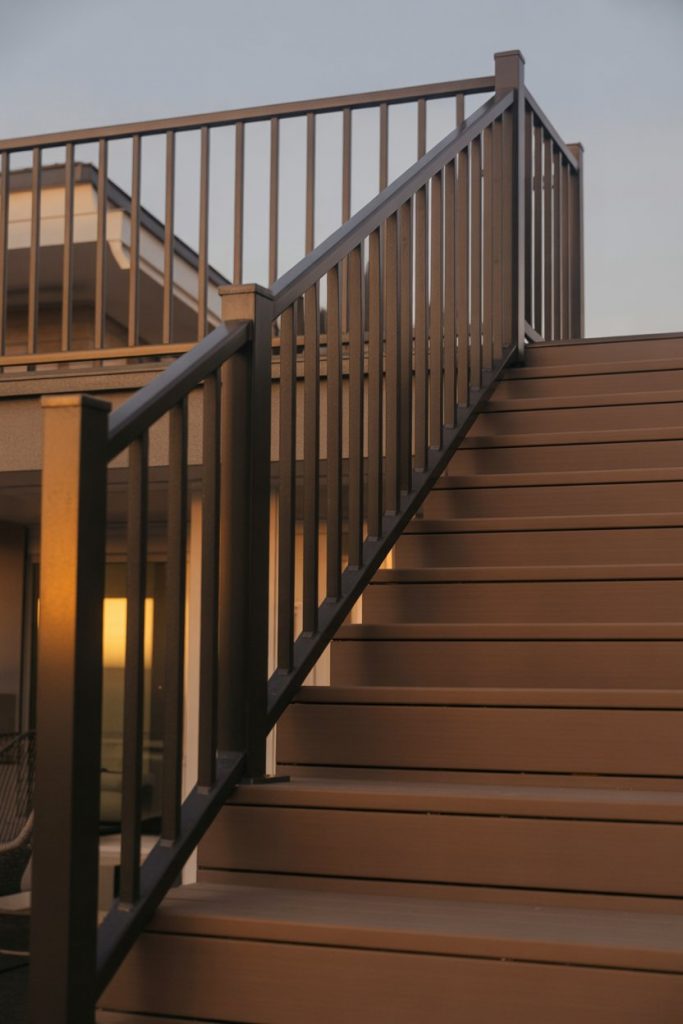 If you’re designing an outdoor staircase leading to a deck, patio, or garden, consider railings with integrated LED lighting. These systems illuminate each step and the handrail itself, creating a safe, welcoming path after dark while adding a beautiful glow to your exterior space. It’s practical, stylish, and perfect for homes where outdoor entertaining is a priority.