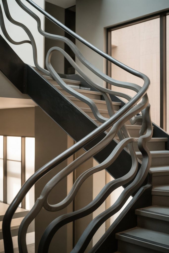 22. Artistic Stair Railings with Custom Metalwork