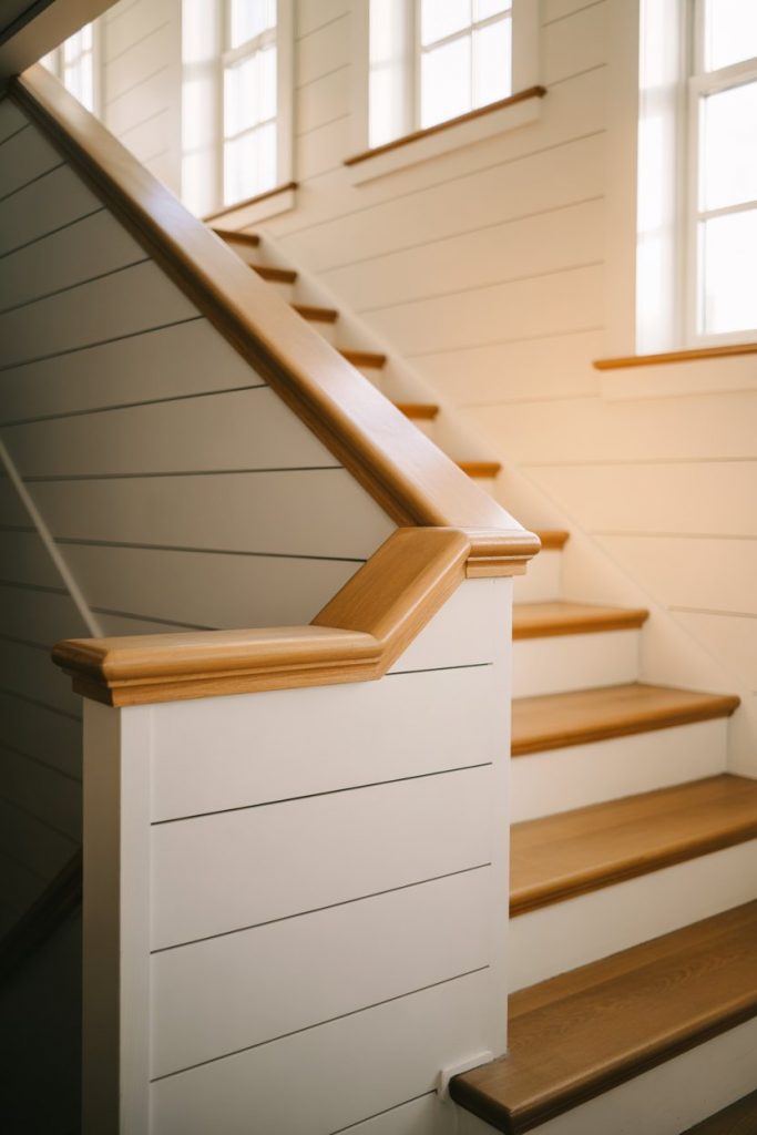 This approach is hugely popular in DIY circles because it’s forgiving—if you don’t love the color combo, you can always repaint. Real homeowner behavior: many people start with an all-white railing and later add a wood or contrasting handrail for warmth. Use high-quality paint and primer for durability, especially on high-touch surfaces like handrails. Where it works best: traditional, farmhouse, and transitional homes where you want a timeless look with a hint of personality.