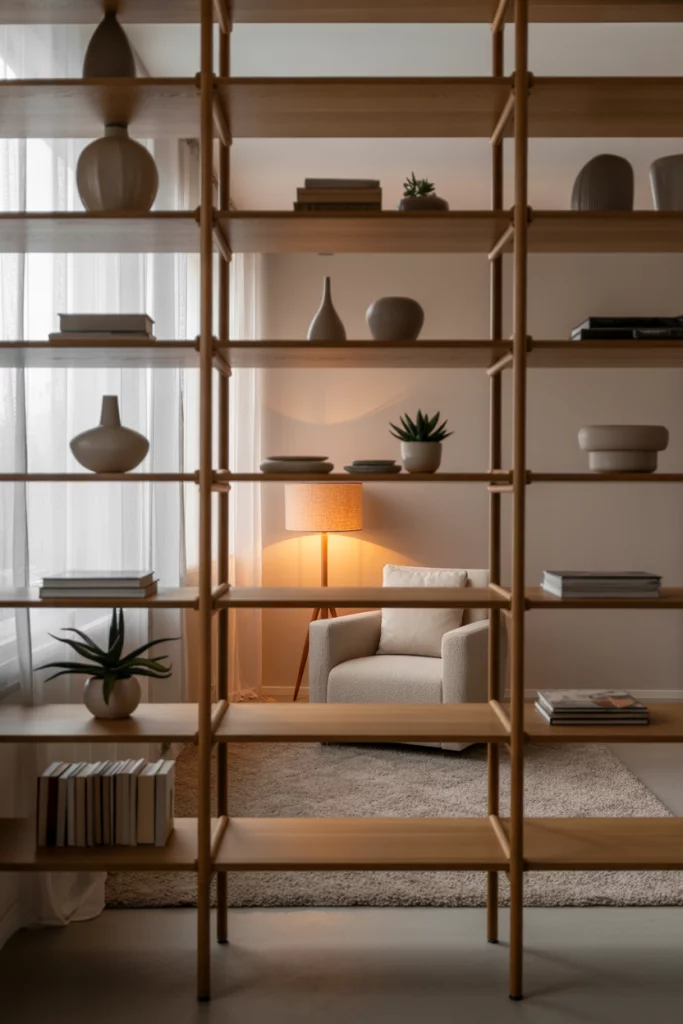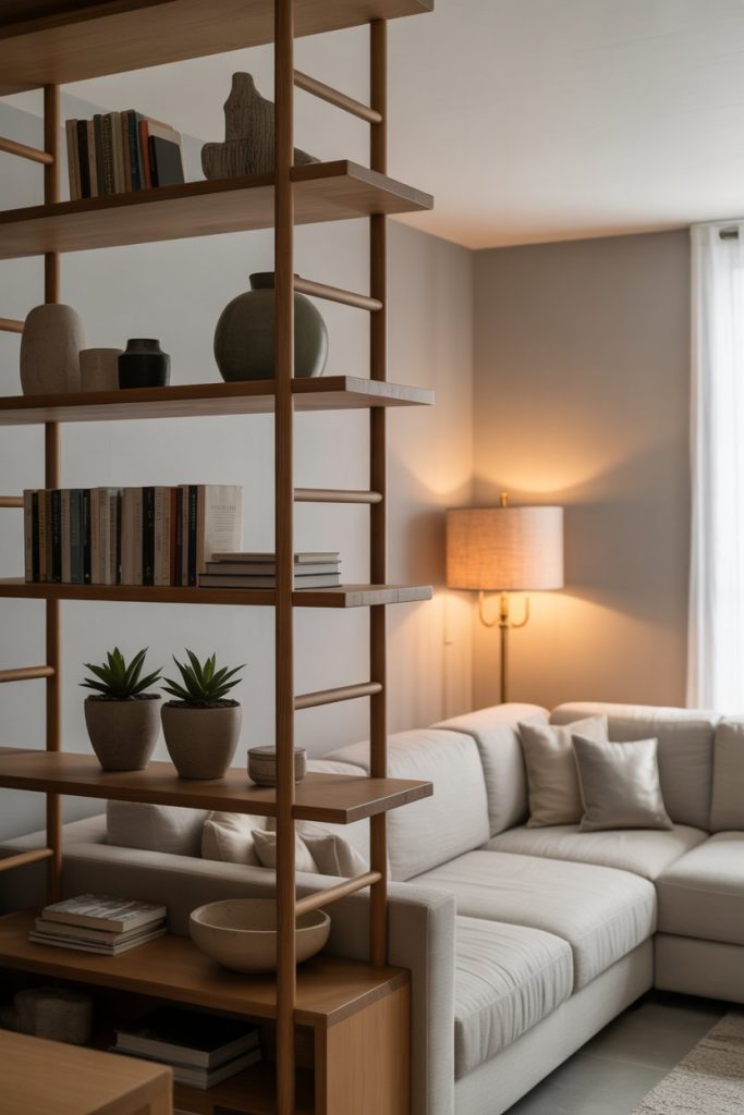 Using a divider helps segment your layout into distinct yet open areas. In a 400 sq ft or 500 sq ft apartment, a folding screen, open shelving, or curtains can define the kitchen, workspace, and sleeping zones without closing the room off. When I used a bamboo divider in my own tiny aesthetic loft, it instantly made the space feel structured yet cozy, balancing openness and privacy.