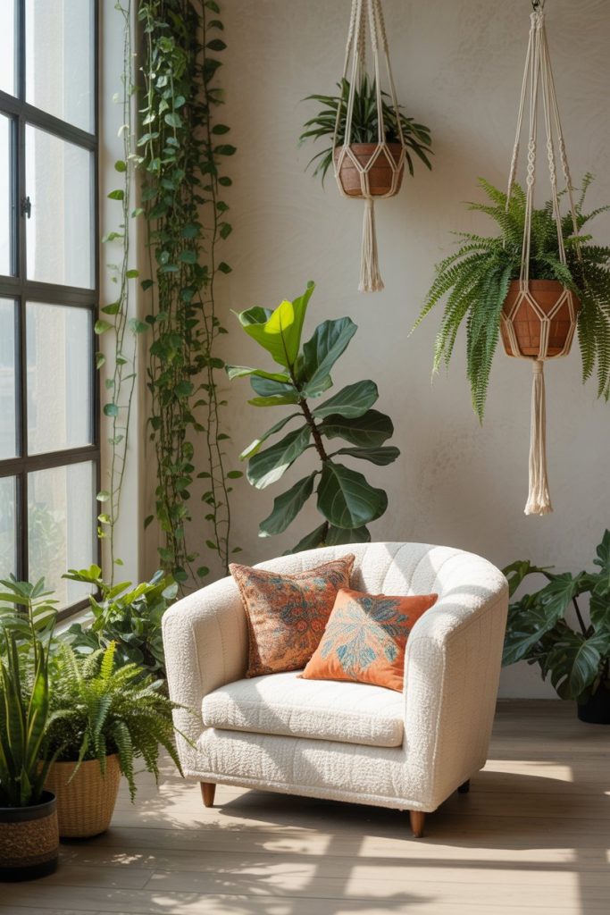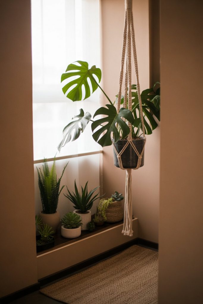 Bringing greenery indoors turns any tiny or micro home into a tranquil retreat. Add large leafy plants like monstera or fiddle-leaf figs to soften the modern edges of your layout. In a 450 sq ft apartment, I used hanging pots to create visual height and texture — the result was both cozy and refreshing, proving that nature thrives even in city limits.