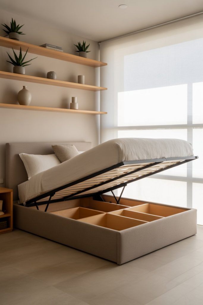 In a 400 sq ft or 500 sq ft apartment, efficient layout planning is everything. Choose beds with drawers, ottomans that open, and floating cabinets that free up the floor. I once saw a minimalist designer in Seattle transform her tiny aesthetic flat using only concealed storage — her home looked large, elegant, and clutter-free.