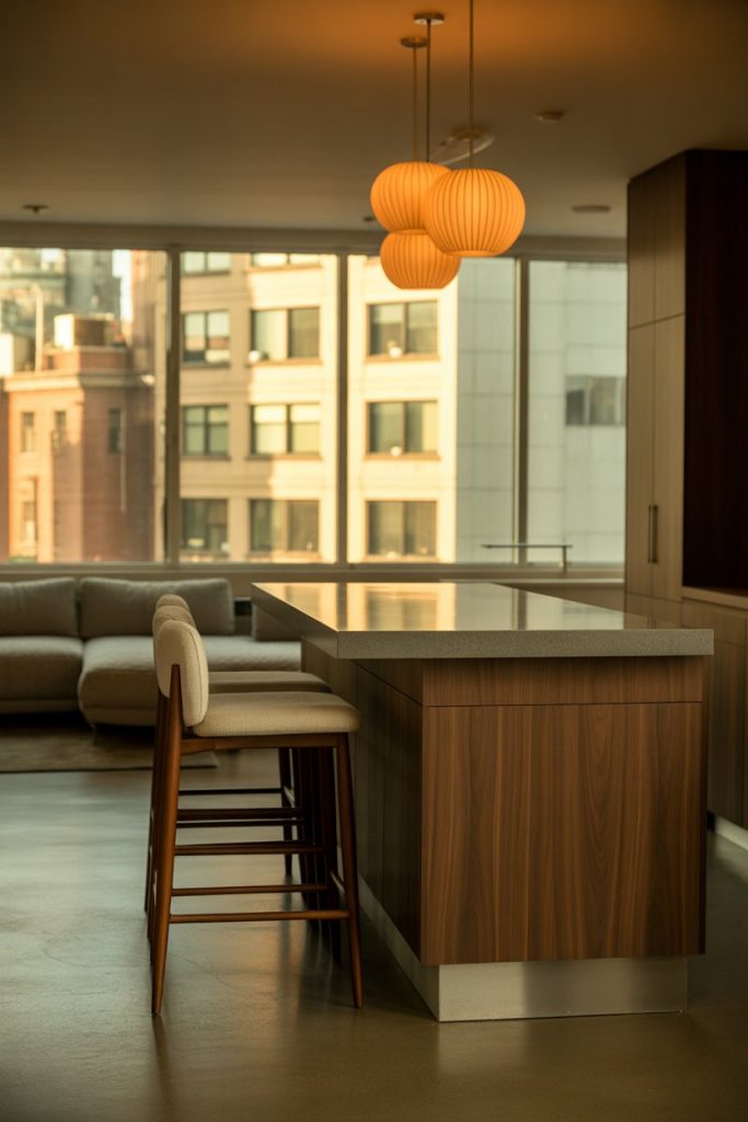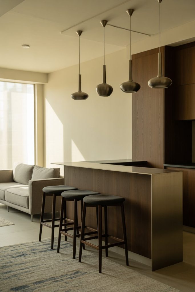 For open-concept layouts, turn your kitchen counter into a social hub. Add bar stools and pendant lights for function and flair. In a 450 sq ft studio I toured in Brooklyn, a small breakfast bar doubled as a workspace and dining zone — maximizing every inch of the layout plan while maintaining a modern aesthetic.