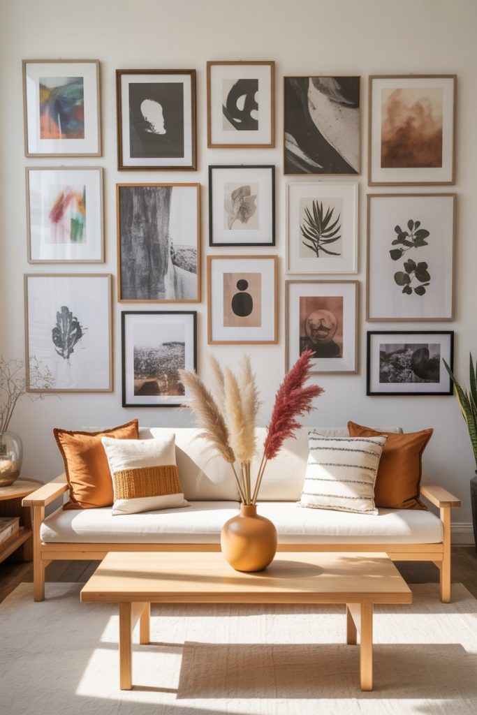 Transform one wall into your creative statement. Even in a micro apartment, a curated aesthetic of framed art or vintage posters adds depth. In my tiny loft, I built a gallery wall of local prints — it made the space feel dynamic and personal without crowding it. A touch of Boho color always helps.