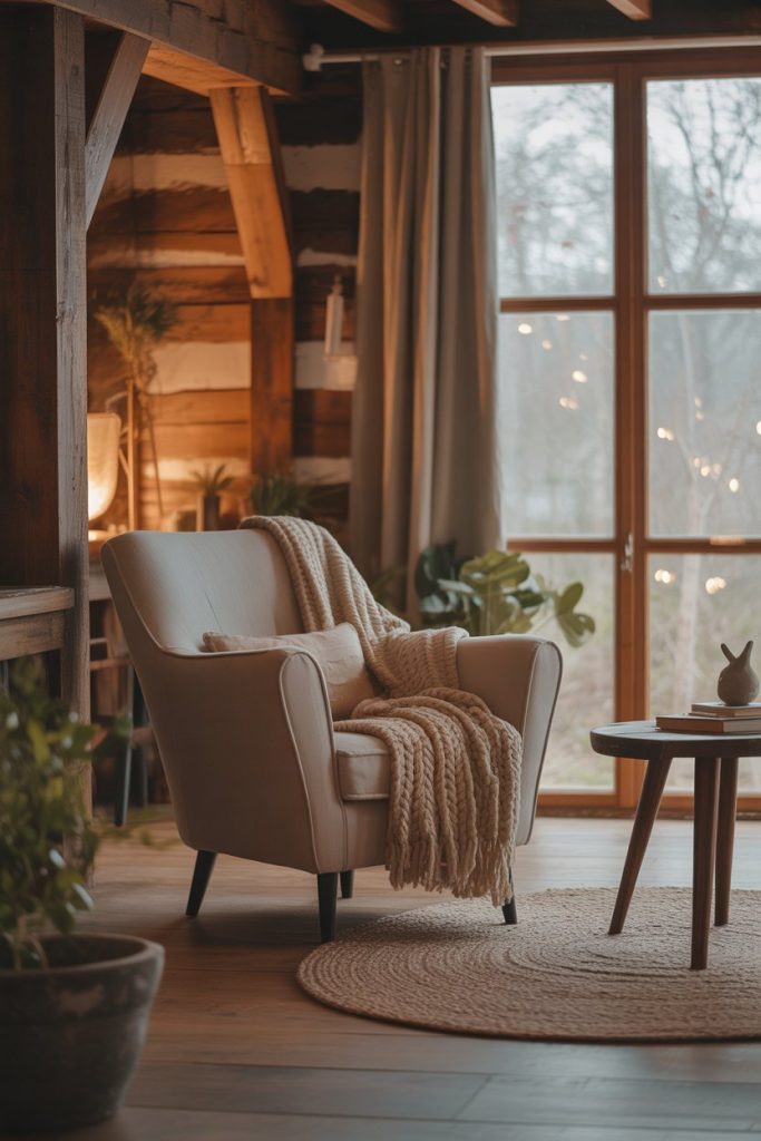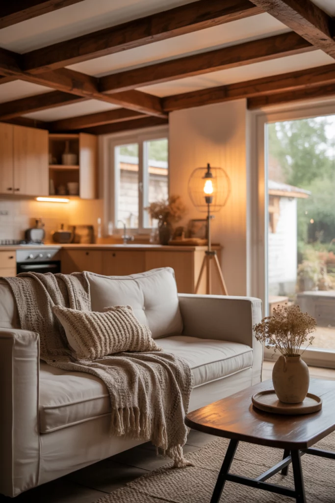 Bring the warmth of a cabin into your tiny cozy home with wood panels, woven throws, and soft light. In a 500 sq ft studio in Vermont, reclaimed timber walls made the space feel like a mountain getaway. Combine Boho textures with rustic elements for an aesthetic that feels both nostalgic and naturally grounding.