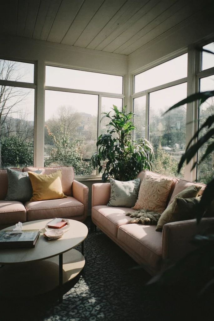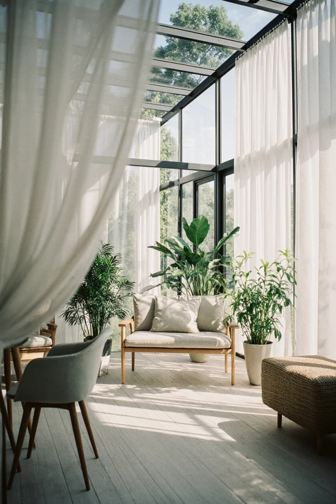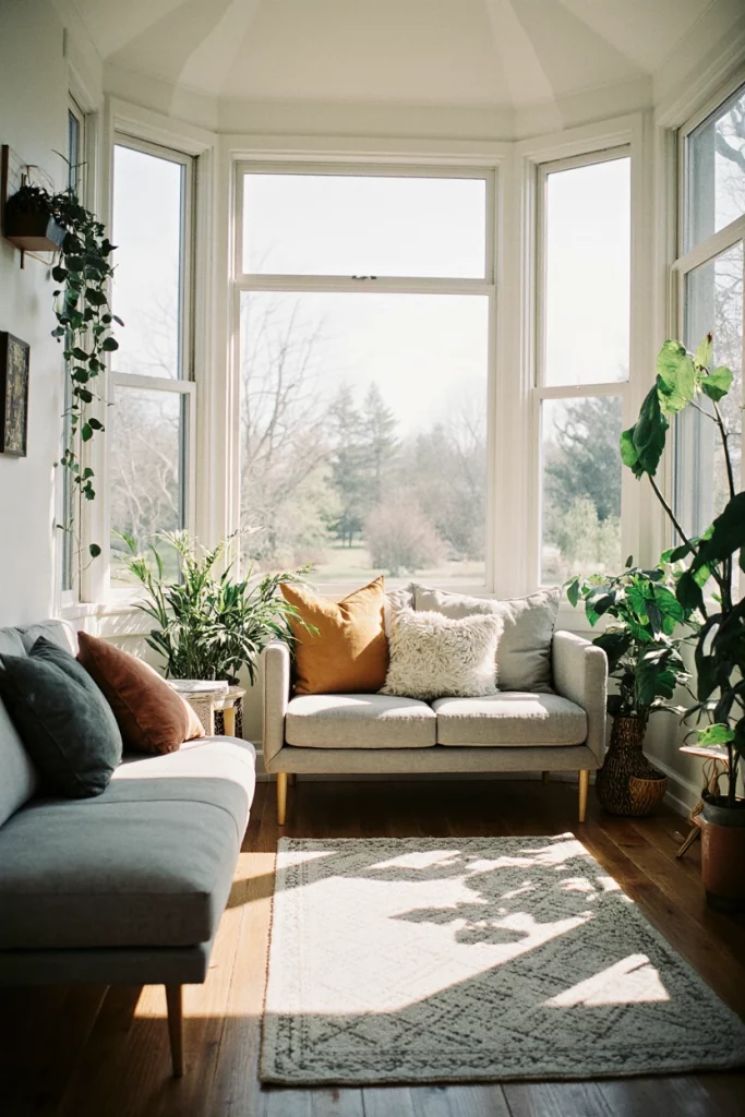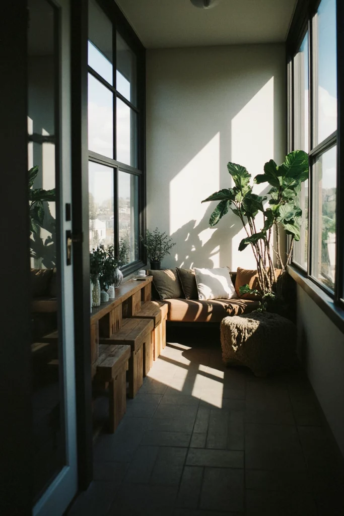 An apartment sunroom created from an enclosed balcony provides a light-filled area perfect for work, reading, or morning routines. With careful decorating, the space feels surprisingly open despite its size. A mix of plants, textured fabrics, and compact furniture makes it both functional and cozy. This style is especially popular among city dwellers who want a daily connection to the outdoor world without leaving home.