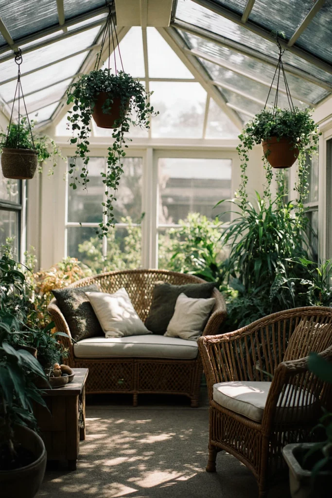 A sunroom dedicated to plants becomes a bright indoor garden where homeowners can unwind while surrounded by greenery. This style suits both narrow and large rooms and appeals to anyone seeking a calming routine. With layered pots, hanging planters, and natural materials, the room feels alive and energizing. Designers often say plant-focused sunrooms support better mood, softer lighting, and a more organic living environment.
