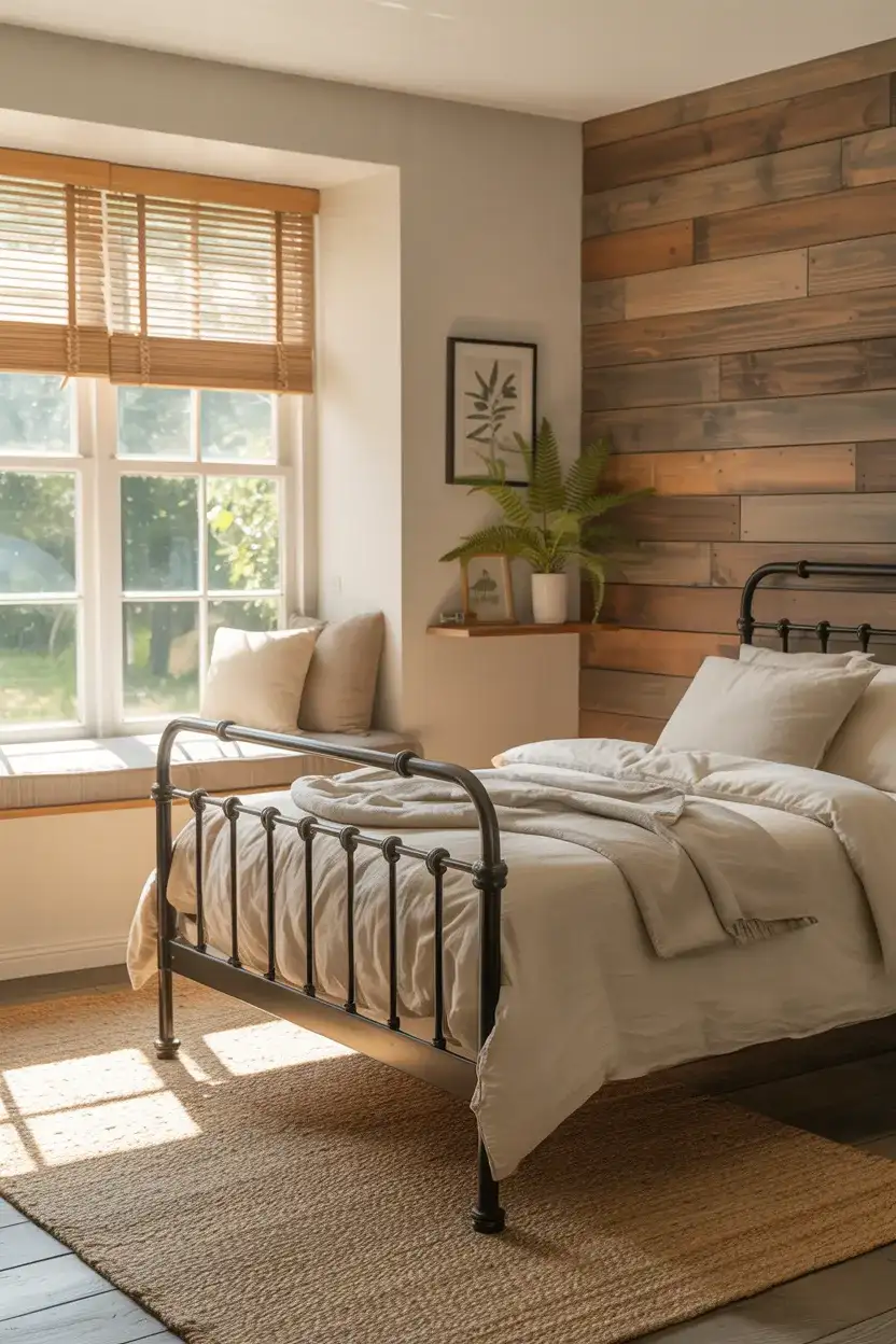 The cottage aesthetic has no gender, and forward-thinking parents are starting to apply it to boys’ bedrooms with stunning results. Think warm wood plank ceilings or an accent wall in tongue-and-groove, a cozy reading nook built beneath a window with a cushionedCottagecore storage bench, linen curtains, a braided rug, and a nature-inspired color palette of forest green, warm terracotta, and cream. This works especially beautifully in older American homes in the South and Northeast, where the architecture already has character that this style can lean into. For boys who love hiking, nature, or reading, this room becomes a haven.