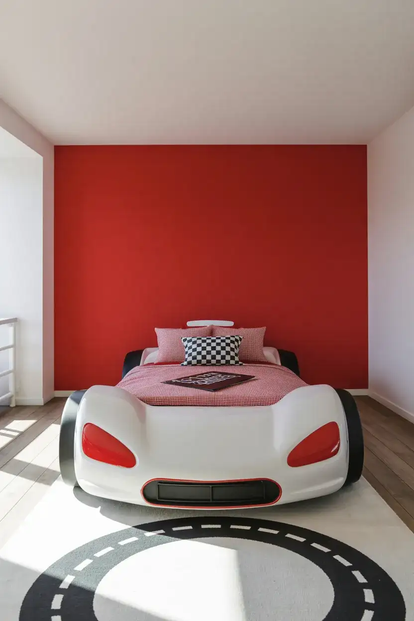 The Lightning McQueen room is a perennial request, and in 2026, the best approach is to make it feel like a pit stop rather than a toy commercial. Use the character’s signature red as a bold accent color—on—pegboards one wall, as the bed frame color, or in the rug—and—on pair it with crisp white and warm charcoal to ground the palette. Licensed bedding is fine for the youngest fans, but balance it with real furniture and non-licensed accessories. Racing-stripe wallpaper panels, checkered flag throw pillows, and a track-shaped rug work across a wider age range and let the room grow as the child transitions from pure Cars fandom to a broader love of racing and speed.
