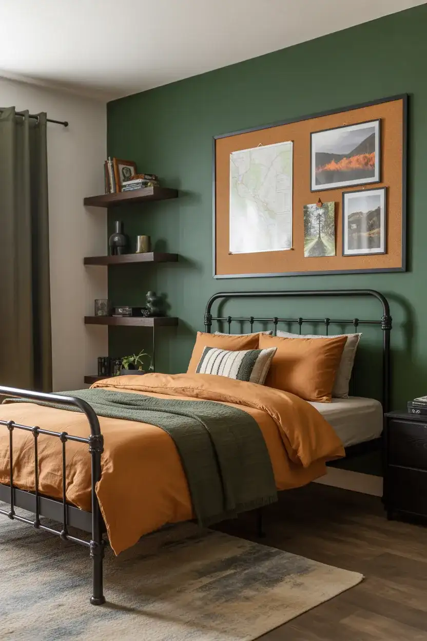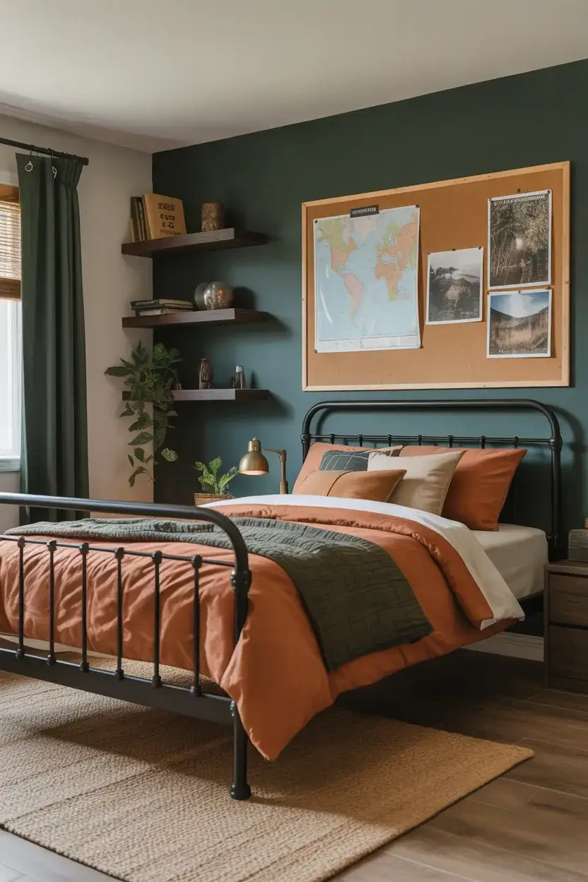 Rooms like this benefit enormously from dedicating one wall to a “display and store” system—pegboardsrange but work brilliantly here. Mounted in matte black or dark green, a pegboard wall lets a boy display die-cast models, helmets, or small equipment while keeping everything accessible and organized. It’s a solution that actually gets used and maintained, which is practically a miracle in a teenage boy’s bedroom.