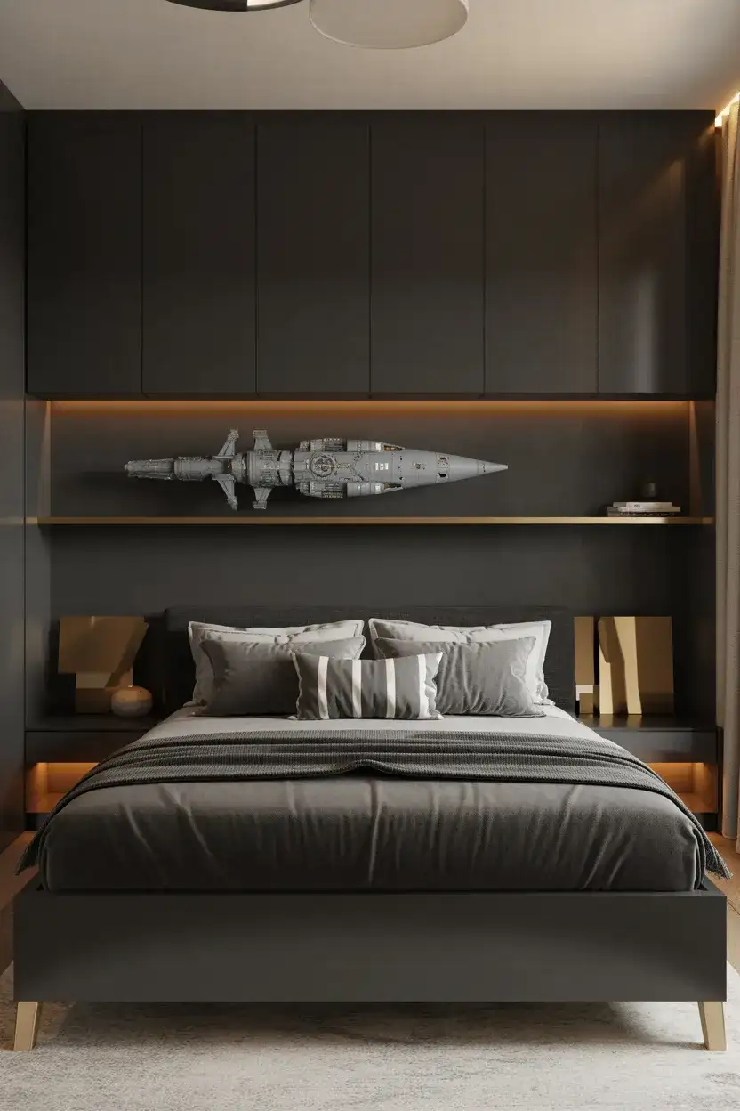 A Star Wars room in 2026 looks nothing like it did in 2010. Instead of cartoon Yoda bedding on a generic twin bed, think deep space blacks and warm metallics, with nods to the galaxy far, far away woven into the architecture of the room itself. This aesthetic skews closer to timeless design than you’d expect—a—a dark wall with a single Millennium Falcon model on a floating shelf reads as cool to a ten-year-old and a seventeen-year-old alike. The key is restraint: let two or three statement pieces do the heavy lifting instead of covering every surface.