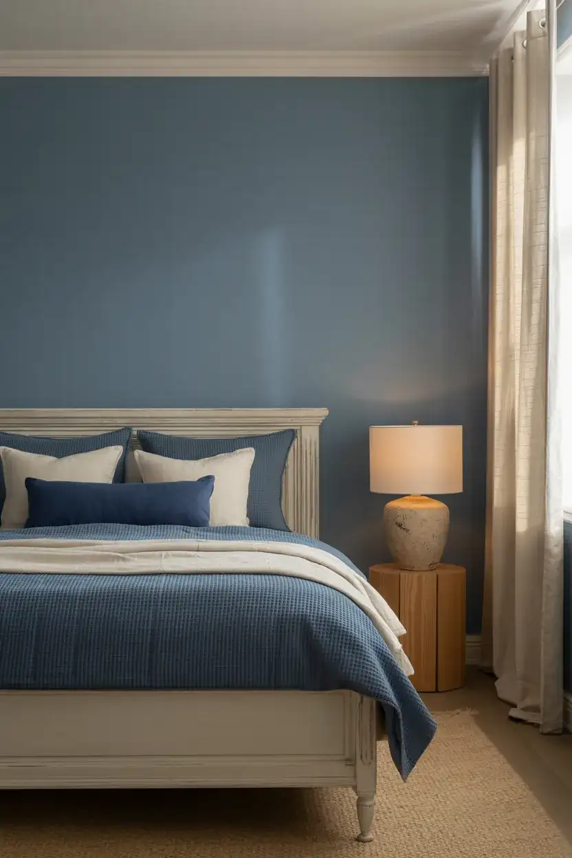This works best in rooms that have at least one architectural feature worth highlighting—crown—crown molding, a window seat, built-in bookcases, or board-and-batten wainscoting. The blue-and-white palette makes those details pop in a way that a more neutral room sometimes can’t. If the room is architecturally plain, add character with a beadboard half-wall or simple picture-rail molding—both—both are affordable DIY projects that transform the space dramatically.