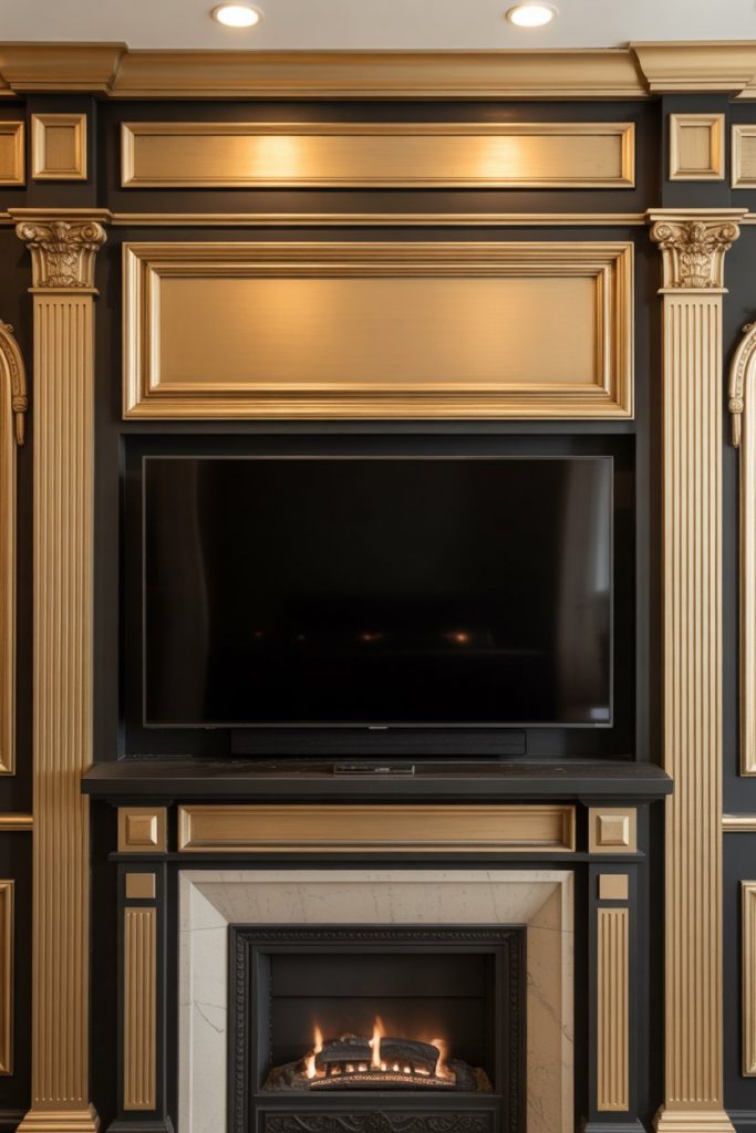 A luxury classic TV wall with paneled moldings and gold detailing feels regal yet current. Combine black, cream, and brass tones with gypsum borders. The fireplace can be centered below the screen for balance. This design thrives in grand homes where modern tech meets timeless sophistication. Inspired by French neoclassical interiors, it offers glamour with restraint—the epitome of elegant taste.