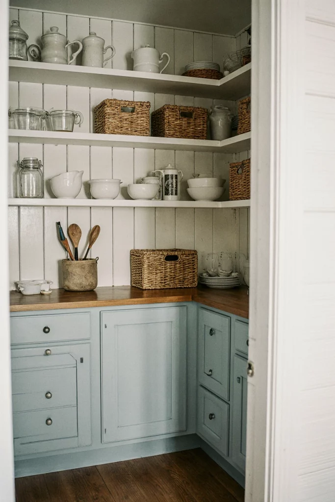 Residents in coastal and lakeside states gravitate toward this aesthetic because it feels familiar and calming. The pantry becomes an extension of everyday life—light, breezy, and usable. Woven baskets and natural textures help organize essentials without sacrificing charm.