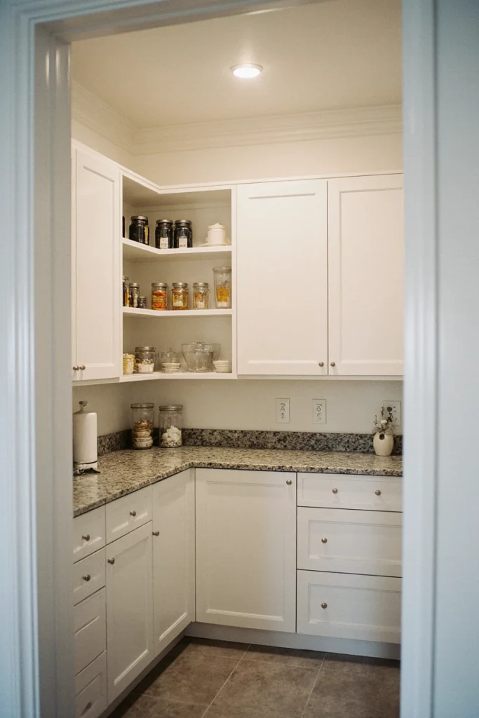 This design works best in suburban homes where square footage is valuable. The simplified path reduces frustration during quick cooking tasks and prevents traffic jams around the kitchen. Over time, homeowners appreciate how seamlessly the pantry fits into their daily rhythm.